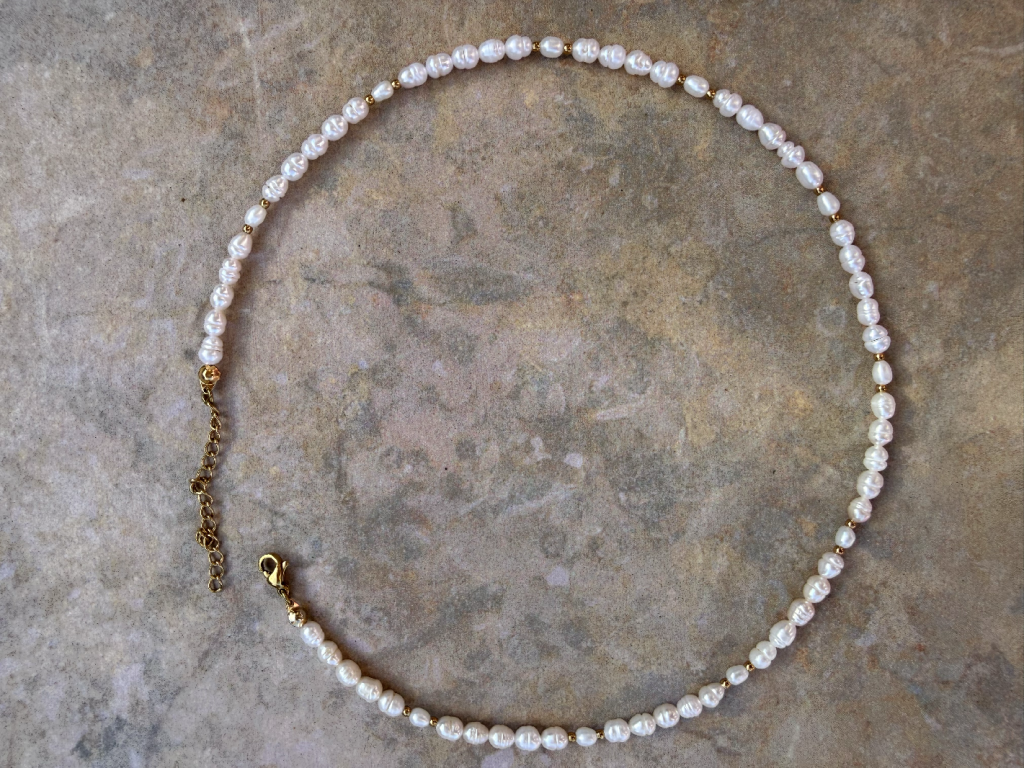 Nadčasový náhrdelník z říčních perel, který se hodí ke všemu – samostatně i ve vrstvení. Korálky a zapínání ze zlacené nerezové oceli zajišťují odolnost i při běžném nošení. Každý náhrdelník je jedinečný díky přirozené kresbě perel.
