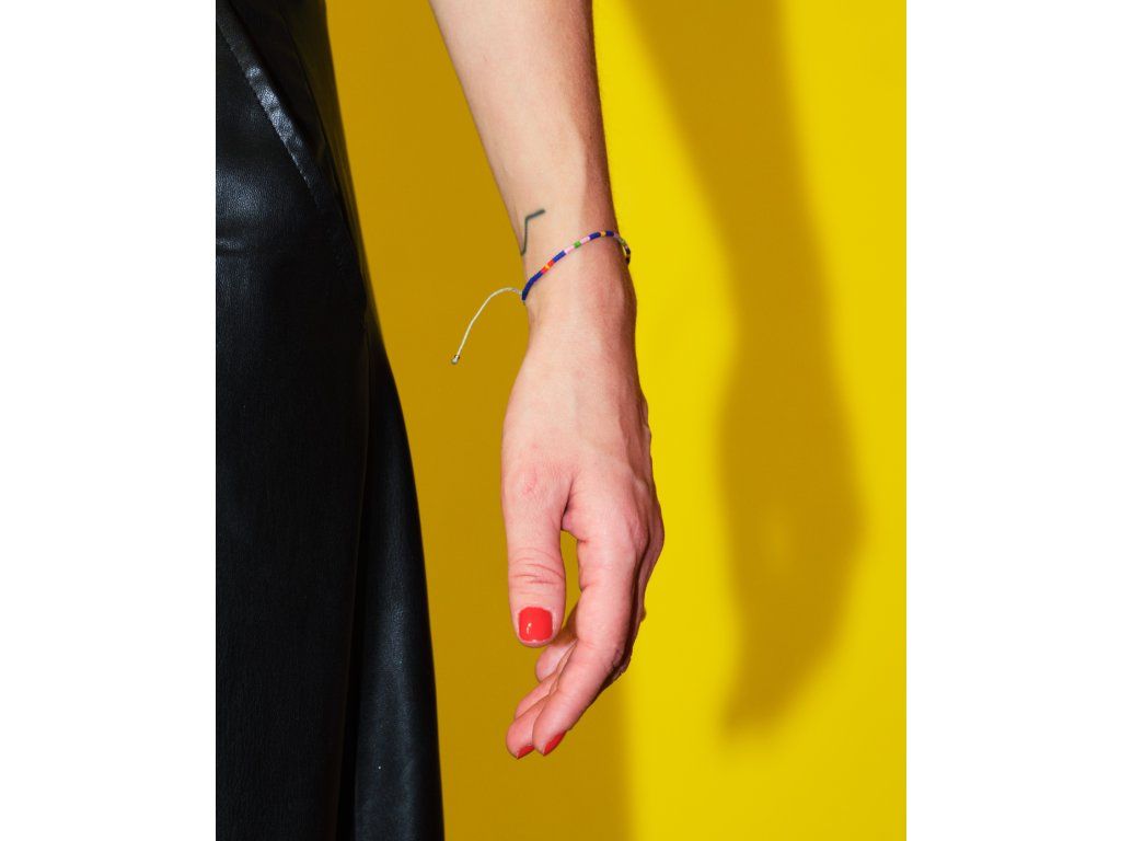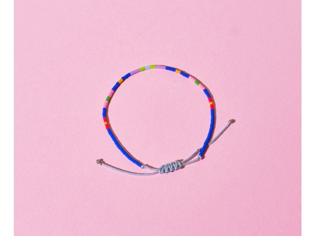 Velikost korálků je cca 1,6 mm. Šňůrka je posuvná a náramek je vhodný na zápěstí o obvodu cca 15-18 cm. Náramek na nylové šňůrce.