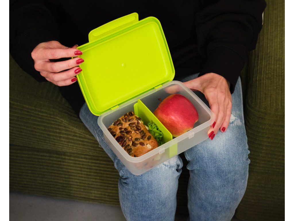 Lahev o objemu 0,5 l je vyrobena z medicínského polypropylenu, který je 100% bezpečný, vysoce odolný, recyklovatelný a především má snadnou údržbu a dlouhou životnost. Krabička je vyrobena v chráněné dílně ze 100% recyklátu. Není vodotěsná, je určená pro běžné pevné a sypké potraviny.